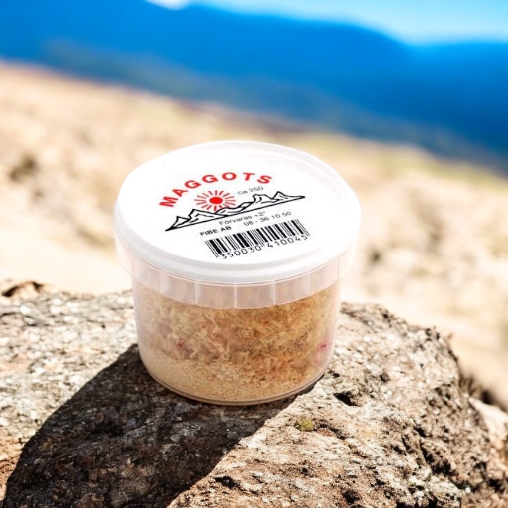 Klassiska maggots för pimpelfiske eller mete.