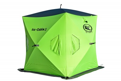 IFISH IceCabin 3. Isfisketält för 3 personer som är enkelt att sätta upp. Ett isfisketält är praktiskt att ha med sig på fisketuren då det ger bra skydd mot hård vind och dåligt väder. Man kan även sitta inne i tältet och fiska. Ice Cabin 3 är tillverkat i slitstark 300D nylon med förstärkta detaljer och har fyra fönster som kan mörkläggas samt två dörrar. 8 styck isskruvar för förankring av tältet medföljer. Levereras i praktisk förvaringsväska. Specifikationer: Vikt 10,5kg. Mått 180 (L) x 180 (B) x 200 (H)cm