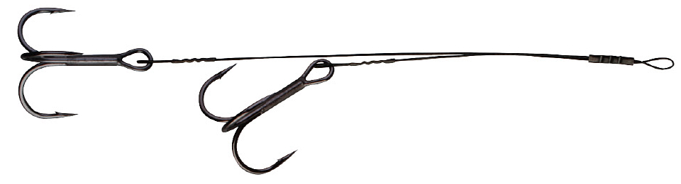 Dubblestingers från Savage Gear. Svart plastöverdragen stålwire med bra krokar som passar medium size beten och uppåt.