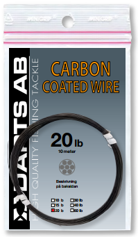Carbonöverdragen 7-trådig wire som är mjuk och smidig. Använd wirelås, värm eller knyt ihop. Superwire till gäddfluga.