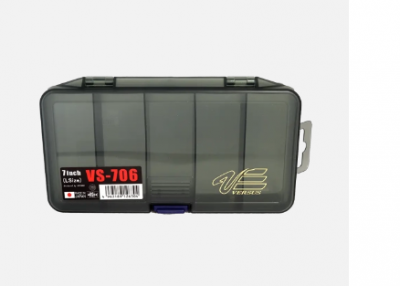 Securely store your fishing tackle with the Meiho Versus VS-706 plastic utility case. This 7 inch, fly style, plastic case comes with 4 fixed plastic dividers creating 5 permanent compartments for fishing tackle storage. With this, The VS-706 has an attached plastic lid with strong latch closure to ensure your fishing tackle and supplies stay inside the case during transport. This case is made from a strong polypropylene plastic in a translucent black color.